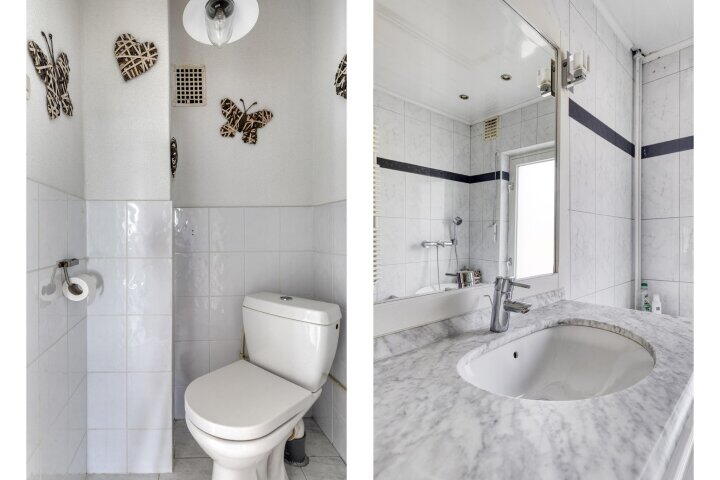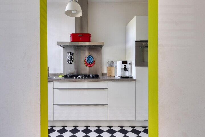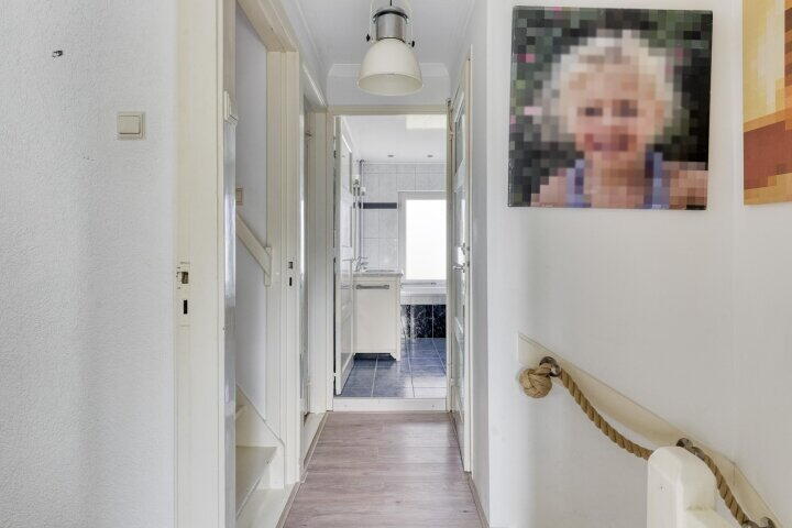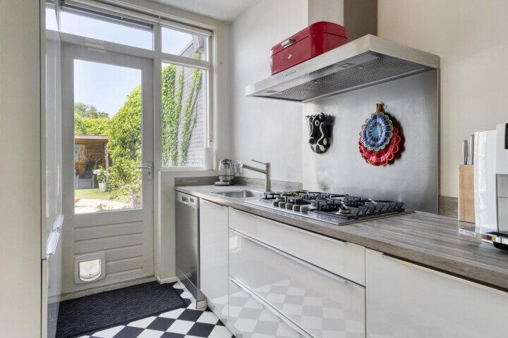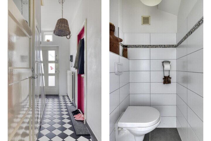 In de voortuin kun je je fiets eventueel veilig in een beugel op slot zetten, wel zo handig! Via deze voortuin stap je de woning binnen in een sfeervolle hal met stijlvolle zwart-witte tegels. Hier vind je het nette, aparte toilet, de trap naar boven, extra kastruimte en een fijne, eerste indruk.