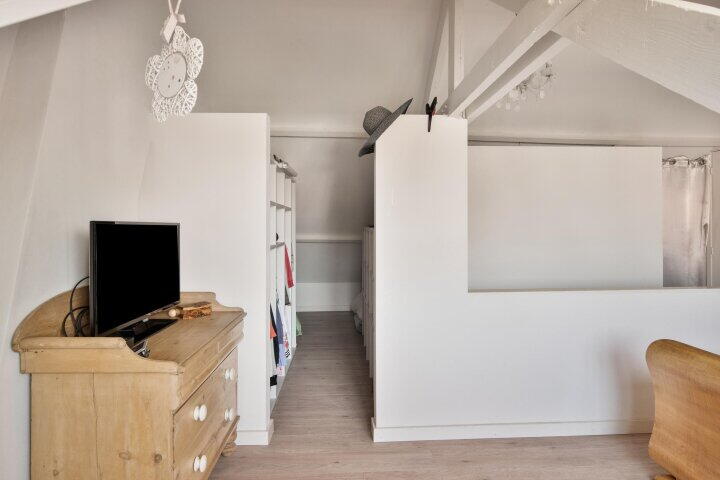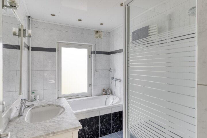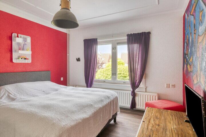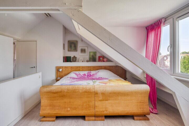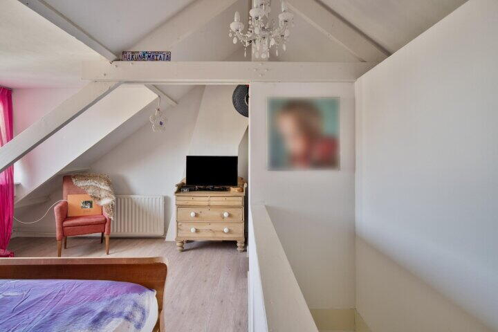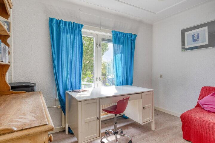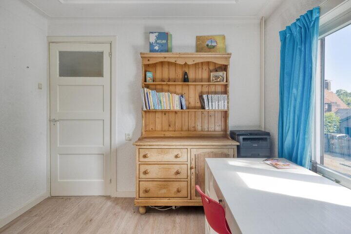 Op de eerste verdieping zijn twee ruime, lichte slaapkamers. Eén van de kamers wordt momenteel gebruikt als kantoor, ideaal voor thuiswerk of creatieve bezigheden. Op zolder, bereikbaar via een vaste trap, vind je een royale derde slaapkamer met walk-in closet en extra bergruimte. De badkamer is netjes en compleet met ligbad, douche, wastafel met meubel én een apart toilet op de overloop.